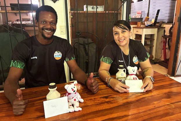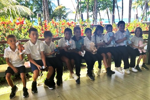 Now back to yesterday’s journey. After checkout at Tiskita Lodge we return to the beach to a local school to give out beanies. One of the employees at Tiskita has a child going to the school and was there to meet us. It was like Christmas for the children who chose whatever beanie appealed to them. The rest that were left will be given to the remainder of the students who were not there. The whole school only has 17 children. Everyone was most appreciative! The children were so very sweet and friendly, some wanting to practice their limited English.