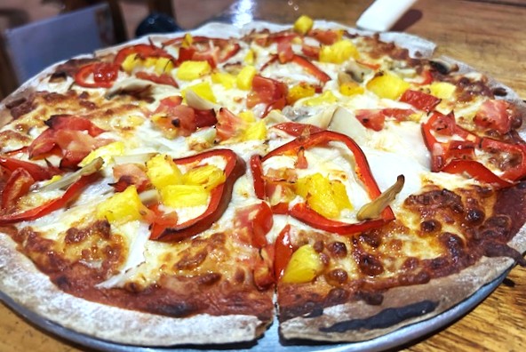 We head out to Moromo Forneria in nearby Dominical for dinner. I was a little worried about a nearby parking place as Dominical can be very busy. But on this particular night Dominical was quiet and we got a prime spot right in front of the restaurant. I splurged on a Margarita $18 Cdn and it was delicious! We decided to share a Pizza Buffalina … tomato sauce, cherry tomatoes, and a very large fresh buffalina cheese covered in a cashew pesto in the centre. The pizza was 18 inches and most impressive when it came to the table! But it was $65 Canadian!!! We ate it all but two slices to bring home.