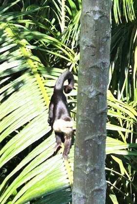 The monkeys were first seen in the morning and came back for a repeat performance later in the afternoon. So much excitement! Previously there have been no Moms with babies that I have seen over the last few days but today I saw one! We were so busy taking photos we didn’t notice one bold monkey had jumped on a table on our terrace and in his hands was Norm’s computer mouse. I turned around just in the knick of time, “Noooooooooo” I screamed, and the monkey ran off without it! With memories of last year’s ‘mouse theft’ still fresh in our minds it seemed unbelievable it almost happened again!