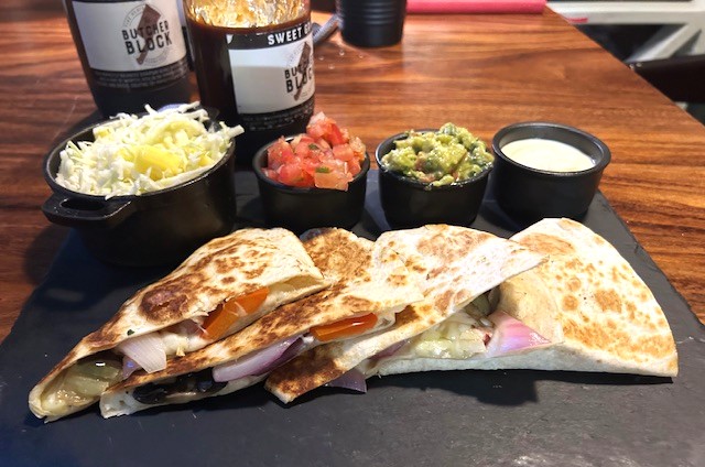 Norm ordered a half a rack of ribs, so meaty he couldn’t finish. I ordered a veggie quesadilla with a side of coleslaw. It also came with some additions like pico de gallo, guacamole and sour cream. I couldn’t finish either. Norm has lunch tomorrow.