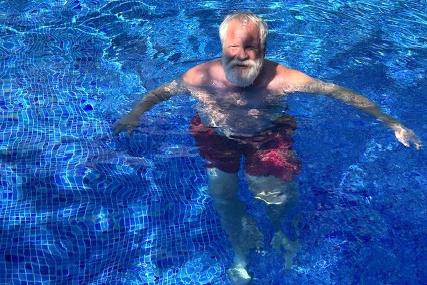 Eventually I decide to sneak in a swim before the lovely energetic surfer family returns. So enjoyable! Cooler than the Rio Mar pool but very nice temperature too. Norm joined me a little later just before the family returned from surfing. We had an interesting chat about the surfer culture in Cornwall England and the popularity of the sport world wide. Last year they were in Sri Lanka and the Philippines catching waves!