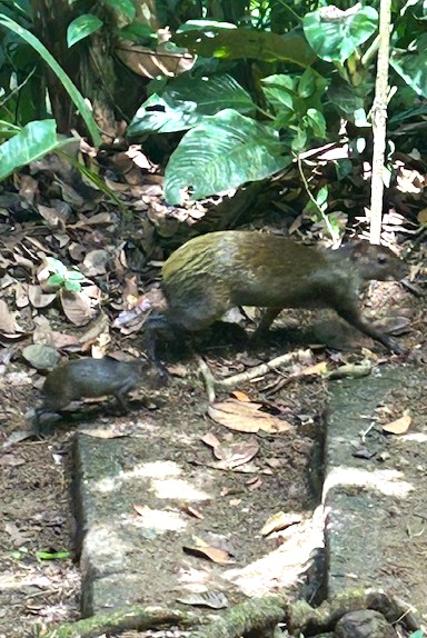 I head back to our cabina, climbing back up the trail staircase and once again back along the trail. I can still hear the rushing water and the birds singing. I’m ‘lost’ in this world until suddenly I spot two black cat-like creatures slinking across the trail … only very much bigger. They give me a stare then vanish into the undergrowth. But in that moment I was a bit scared … I stayed stationary and hoped they weren’t curious. I inched ahead then out of the fallen tree came the last one. This time I got a really good look. The animal looked at me as well, our eyes locked … there was no hiding … both of us likely a bit scared of each other. I savoured the moment. What did I see? In my mind I saw a possible black panther … although I knew this was so highly unlikely. When I returned I asked Michael, the resident expert. He said I saw a Tayra! An animal we have never heard of. I will always remember the Tayra’s beautiful tail … so long and powerful looking … a beautiful animal! What a gift!