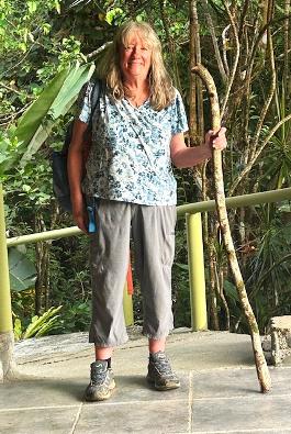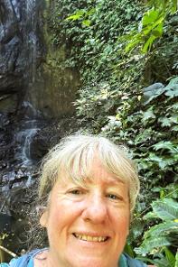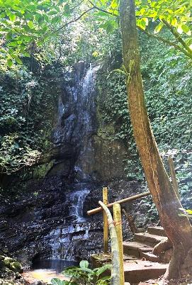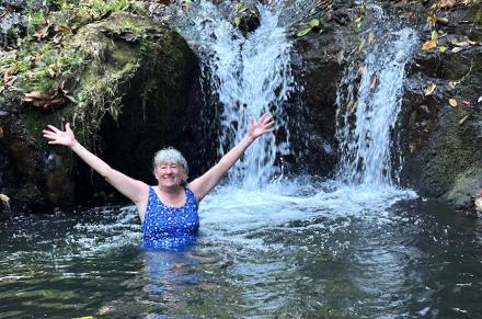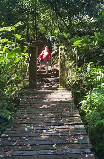 Later in the day we walk to the waterfall. The trail is well maintained but still a bit of a challenge for Norm. The first area accessible to the water is called the ‘natural spa’. The water surprisingly quite a lovely temperature but the rocks so very slippery. Although I went in fully Norm just dipped his toes in as we deemed he could easily slip and fall hard. Afterwards he returned home, just 10 minutes away while I proceeded to the larger waterfall about 10 to 15 minutes further. I was so glad Norm was not there as there were possibly 100 steps down for the best view. No one else was there. So peaceful but for the sound of the rushing water. Alone, but not alone with nature.