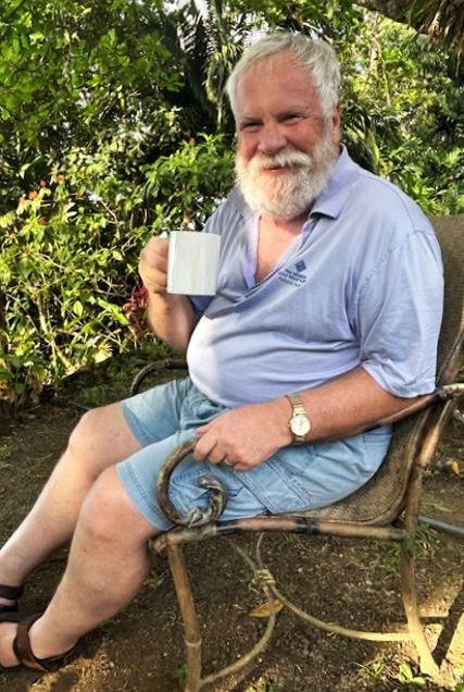 Time for breakfast just as two Scarlet Macaws fly overhead chattering incessantly. Dutch pancakes were made and decorated by Dama. The designs are so cute and often slightly different from each other every time. By the time we arrive at 8:30 am most people have either left for the day or are about to. Teddy serves us and Norm forever teases him. The two of them laugh and laugh.