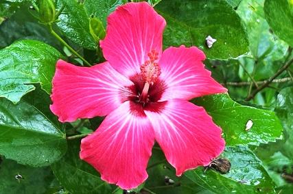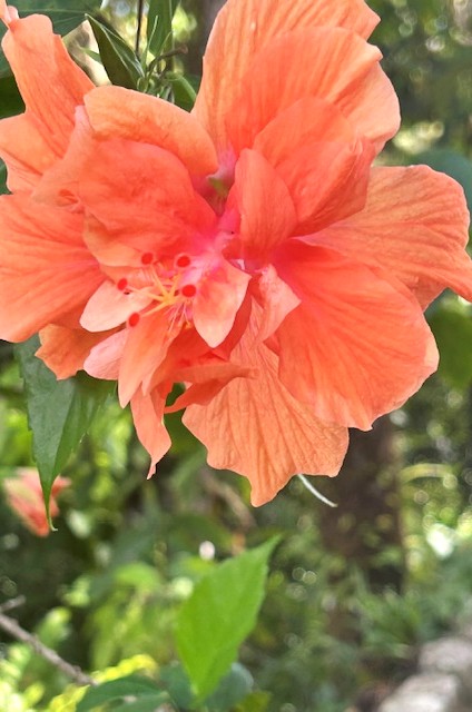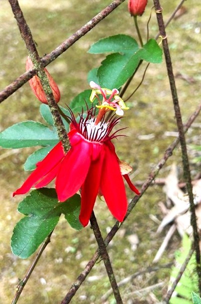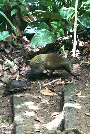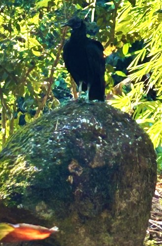 From quite a distance the Howlers announced the morning just as the Drunken Jungle Chicken (Grey-cowled Woodrail) loudly announces its presence. “5:00 am and time to get up people.” The waves sound a little angry this morning. Around 6:00 am I go for a walk. The Black Vultures with their enormous wings now spread wide are trying to dry them after all the rain. I see agoutis, with their wiggly bums, scooting around the forest floor looking for breakfast. Even a mom and baby. I walk further, towering trees creating shadowy darkness. Jet black bats the size of birds are zipping by above my head. Such a beautiful morning! Morticia from the Adam’s Family would surely love it here. Oh maybe not … there are too many bright coloured flowers.