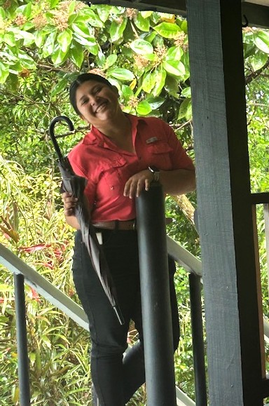 Jerry, a staff member, very thoughtfully brings us umbrellas right to our cabina. So kind! We will really make use of them today! It is not a gentle rain, more like the torrential rains of rainy season. We gingerly walk down the now slippery path, umbrellas in hand!
