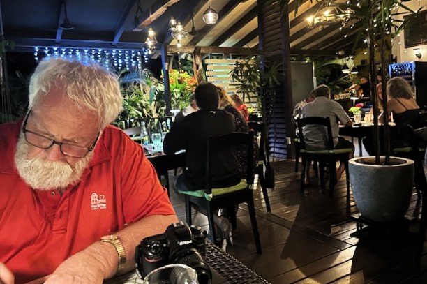 For dinner we will be headed to Exotica in the nearby town of Ojochal. We look forward to each year when we can return to another one of our special places. Over time we have gotten to know Maite one of the family members who runs/owns the restaurant. Exotica has an international mix of food Asian, Italian, Costa Rican …an around the world fusion of foods. The drinks are great too. Norm has a mango smoothie and I have 2 margaritas … a strawberry one followed by passionfruit. Passionfruit is my favourite.
