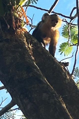 Everyday is different in the jungle. The Howlers are basically no shows at least not nearby this morning. But the sun is shining, the waves are crashing and the birds are definitely singing. I hear a Clay-coloured Thrush singing its ‘Robin’ song. Right now I’m watching a squirrel with its bushy tail dangling while it finds breakfast in a nearby tree and the hummingbirds busy sipping nectar, having their breakfast too. Apparently we have a sloth living in a tree by our Cabin #4. So soon I will attempt to be a sloth detective, maybe I can find it?