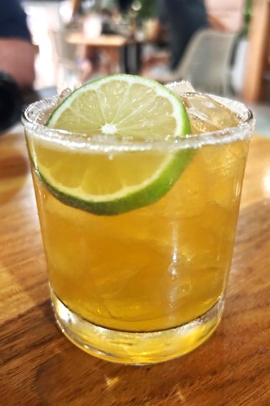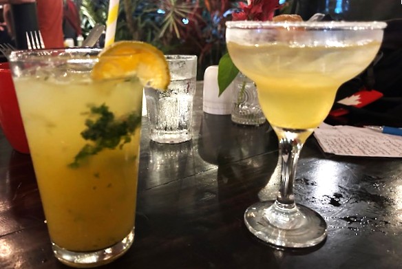 After chatting with the other guests for a bit it was time to head to Ricars 2 restaurant, the one we visited last year with the large antique jet airplane onsite. It is on the road to San Isidoro about a 10 minute drive away. When I saw onion rings on the menu I had to have them. And a salad too. And what a beautiful salad, so delicious with lettuce, avocado, fruit slices, cherry tomatoes and cheese. One of the best salads ever! Norm had the special of the day … surf and turf ... octopus and medallions of beef with pasta. A reminder to always check the price of specials here in Costa Rica. It was more expensive than anticipated. The octopus, not the best, but the rest of the meal good. The margarita was delicious and so pretty decorated with fresh flowers.