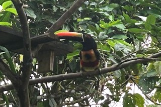 The Howlers had less to say this morning but it’s still early. They were really active all day yesterday so maybe their voices are tired. The Crested Guan was the early riser today … a large black bird, almost vulture sized, black crest on its head with a distinctive cry. The Toucans are happily calling somewhere in the trees below. It poured rain last night which is always a gift to wildlife in the tropics. It feels steamy and it’s just after 6:00 am.