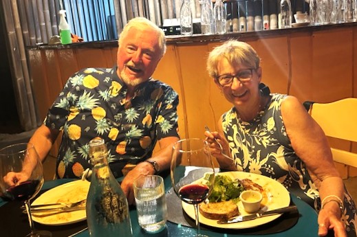 The first dish to come out of their kitchen for us is Norm’s cerviche which he thoroughly enjoys. Our main courses follow, Creamy Vodka Pasta for me and a Vietnamese Hot Pot for Norm. We are in heaven! For dessert we order off menu and ask if a Bananas Flambé might be available. “Of course”, Maite says … ”Just for you”. We had a second dessert picked out just in case Bananas Flambé was not possible and she insisted on bringing a small piece of lime pie with coconut crust, just to try. When it came time to pay, she said not only was the lime pie a gift to us but the entire meal was her and her husband's gift to us. Wow! That was very special even if it felt a little uncomfortable accepting such a generous gift. I could feel tears welling up in my eyes. Happy tears, though. The people we meet and the relationships that are formed are another big reason that keeps us coming back to Costa Rica each year.
