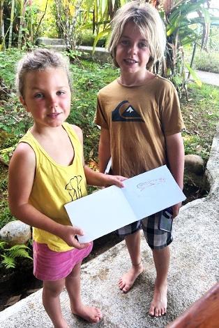 Then all excitement breaks out! Nahla, the little blond surfer girl from England is running up the stairs … ”a snake”, she gasps…”my brother Noa just stepped on a snake!” It didn’t bite but constricted around his ankle. Lori-Anne messaged Sidney back in Florida with a photo. It was determined to probably be a rare type of snake to be found here, a harmless Pygmy Boa Constrictor. The family has quite the story to tell when they return home!