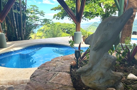 Everyone has left Pacific Edge now for good except for the British family who are off to Rainmaker for an excursion besides surfing. Luckily there is no hurry for the room today so we are at our leisure to whatever time we check out. Isabelle has made us Gallo Pinto for breakfast. We watch the Blue Morpho butterflies enjoying the sweet nectar but never staying in one spot for long. I rather regret not even trying to photograph one. It was so quiet and peaceful by the pool we were in no hurry to leave. Lori Ann and Isabelle have done a great job caretaking the property until a new arrangement is found, in whatever form that will be. They really hope Mikka and Sid do not sell completely but form a partnership with someone. But by 2:00 pm it was time to hit the road.