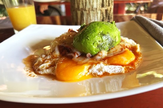 Breakfast yesterday at Vayu was a delicious version of Huevos Ranchero on a thick slice of bread. We both have come to enjoy the zen ambience of Vayu. Other than the ‘sleep at night factor’ it has been absolutely wonderful! Both Rafael and Marc have been fabulous hosts. We talked with Marc about the new expansion …the work on the parking lot now in progress … that will be a huge improvement just in itself. A place where Rafael can perform, yet still keep the peaceful ambience clients love. Not sure exactly how they will accomplish this but no doubt they will.