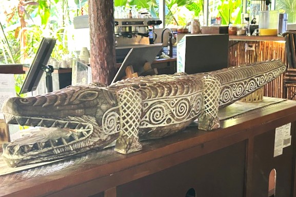 We enjoy our swim in the huge warm pool and conversation with Kathy from Chicago we had previously met at the Crocodile Grill last night. We hang about until 2:30 pm before heading just 10 minutes down the road to Pacific Edge. No hurry, no rush even if no one is there we know the code to get in the gate. We know our room, we could just check ourselves in. But Lori-Anne is there to greet us. The English family arrives too with their three kids just about the same time.