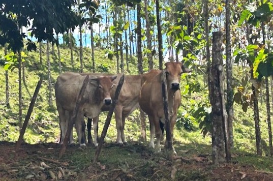 We head south along the highway. We pass palm oil plantations, banana groves and farms with grazing cattle along the way. Little white egrets always the cows’ besties join them as they munch away. Lots of narrow one lane bridges and rough unpaved road patches. But nothing major. Along the way suddenly a reddish orange monkey jumps from a low tree branch onto the road , and then another … squirrel monkeys! We watched them cavort through the trees until it was time to move along.