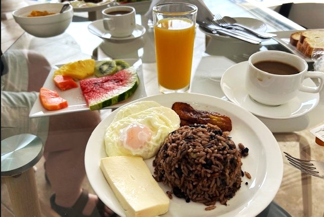 Sunday Feb 8, we started the day off perfectly with a Costa Rican Gallo Pinto breakfast with Mango Passionfruit juice! Many of the other guests had been on a 2 hour plus bird tour. But not us. That is for the super keeners.