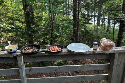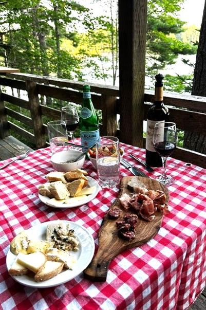 About 7:00 pm a doe and her 3 fawns stumbled along the water’s edge from a distance. Another great photo … if only closer. By 7:30 pm it was time to prepare our Porch Picnic. A chef prepared and presented charcuterie. No one does charcuterie like Norm and Bill.