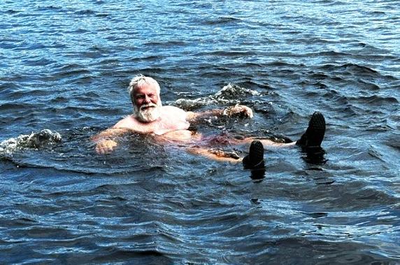 The wind is up again, but after my hike to the lodge I decided rather than a further walk it was time for a swim. I coaxed Norm to join me. It was wonderful! The water was cold at first, but then with warm with cool currents running randomly throughout . Definitely both of us appreciated the swim.