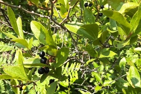 On the left - a touch of gothic … a black starflower leaf.