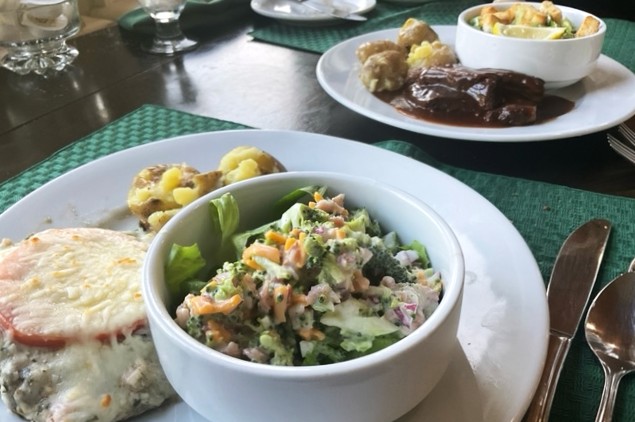 Well I think they had to grow the blueberries for the pancakes or maybe it was that they had to wait until the hens laid more eggs … but everything moved at a turtle’s pace. Not that there was any big rush. When breakfast arrived we joked it was almost lunch.