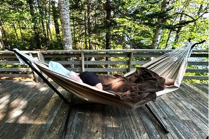 With everything unpacked and the hammock set up , Norm made his first attempt to sit in the hammock. I wished I had a photo. Not a graceful swan, lol! All I heard was “Gayle stop swearing, stop swearing” in his not so quiet voice, lol … I guess laughing would have been the preferred alternative? Would have been a great photo … but it could have been disastrous as he narrowly missed the adjacent wooden chair as he smashed to the ground. After the second try in laying in the hammock before long he was fast asleep. Eventually I too succumbed to a short nap lulled by the gentle bird songs.